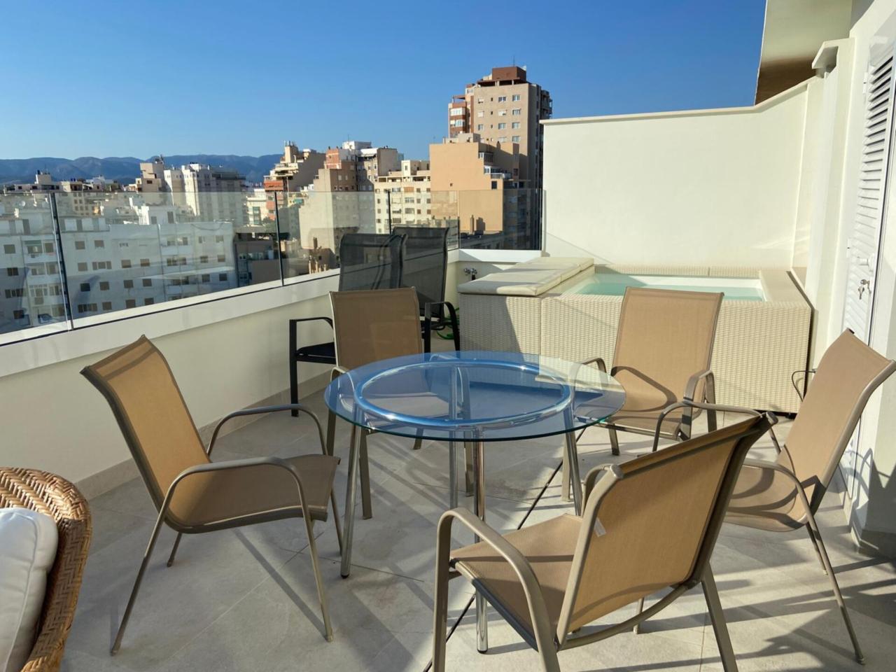 Este impresionante ático se encuentra en la 11ª planta, con una superficie total de 180 m² y una superficie útil de 170 m². Cuenta con 4 habitaciones dobles, 3 baños, aire acondicionado (frío y calor), armarios empotrados, ascensor, calefacción de gas, carpintería exterior de aluminio, una cocina totalmente equipada, una amplia zona de comedor y suelos de mármol. La propiedad ha sido renovada y se vende completamente amueblada, ofreciendo un lavadero, trastero y una soleada terraza de 40 m². Con orientación sureste, este luminoso ático disfruta de una ubicación privilegiada en la zona de Plaça dels Patins de Palma de Mallorca.